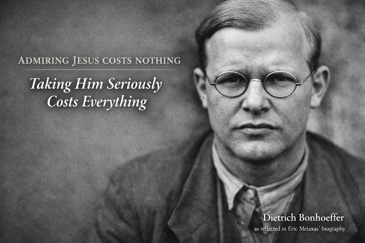 Jesus is easy to admire from a distance. Bonhoeffer reminds us why the moment we take Him seriously, curiosity gives way to confrontation, and everything is suddenly at stake.